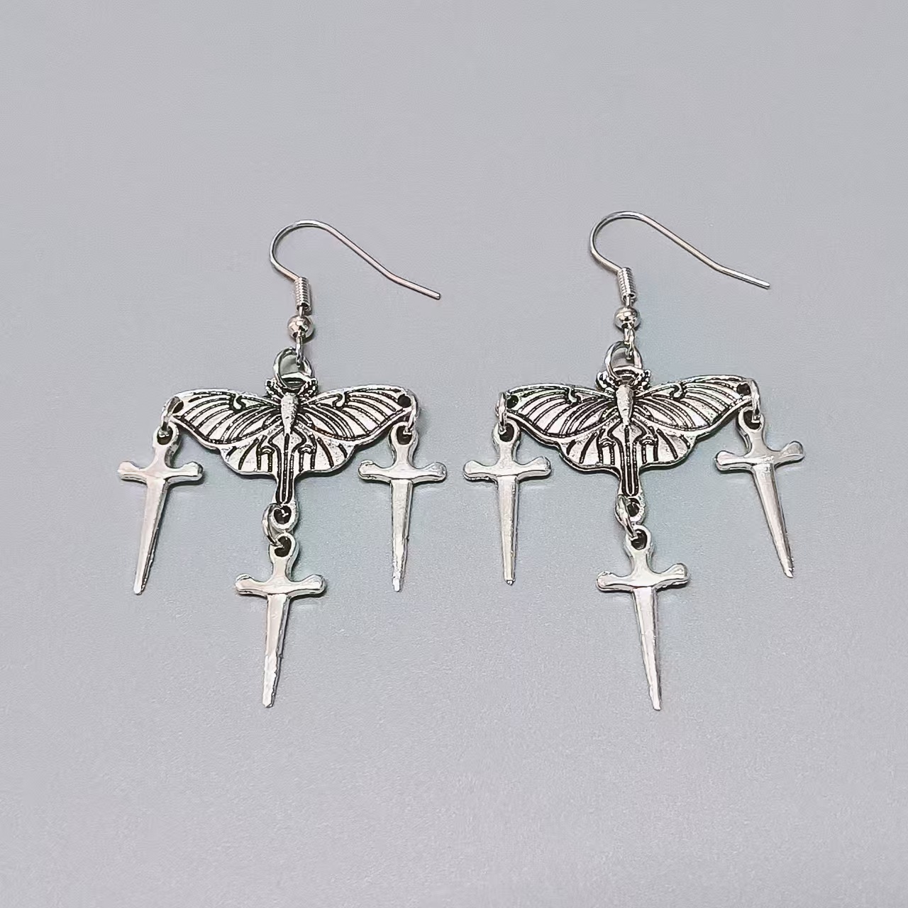 Halloween New Dark Retro Punk Gothic Original Moth Rivet Pointed Heart-Shaped Cone Thorn Earrings