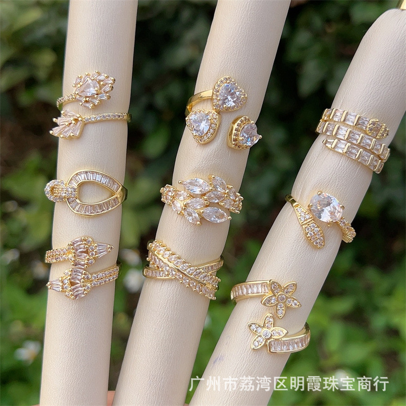 Multi-style Copper Plated 18K Ring Gold Diamond Zircon Flower Special-shaped Pattern Series Original Adjustable Ring