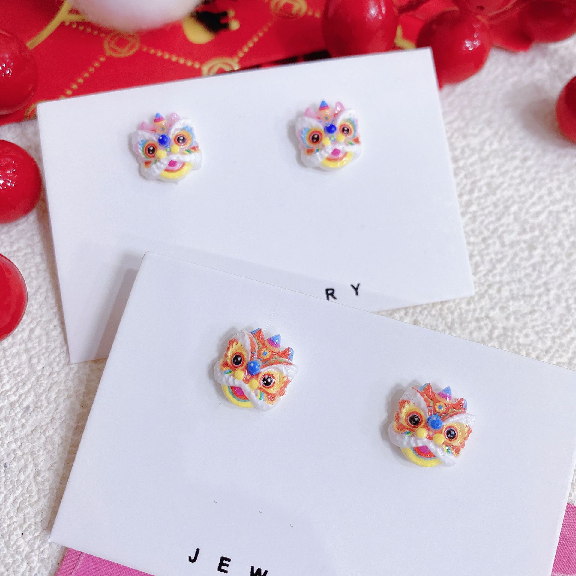 25 New New Year Lion Dance Lion Dance New Chinese Festive Silver Needle Earrings National Tide Glaring Eye-fighting Lion Sweet Earrings