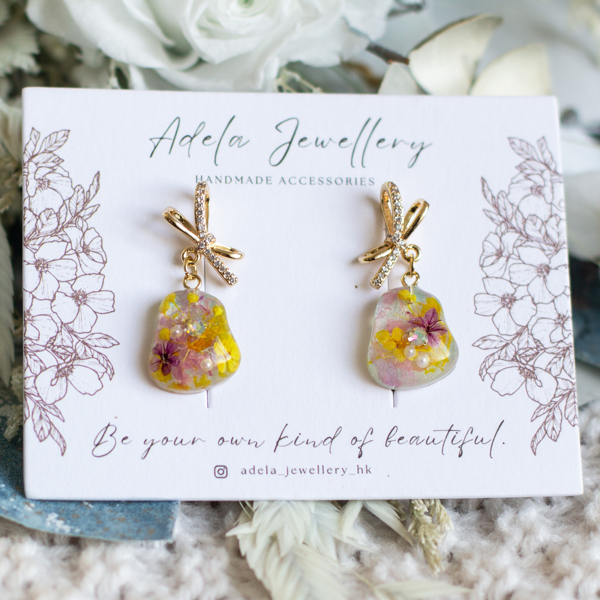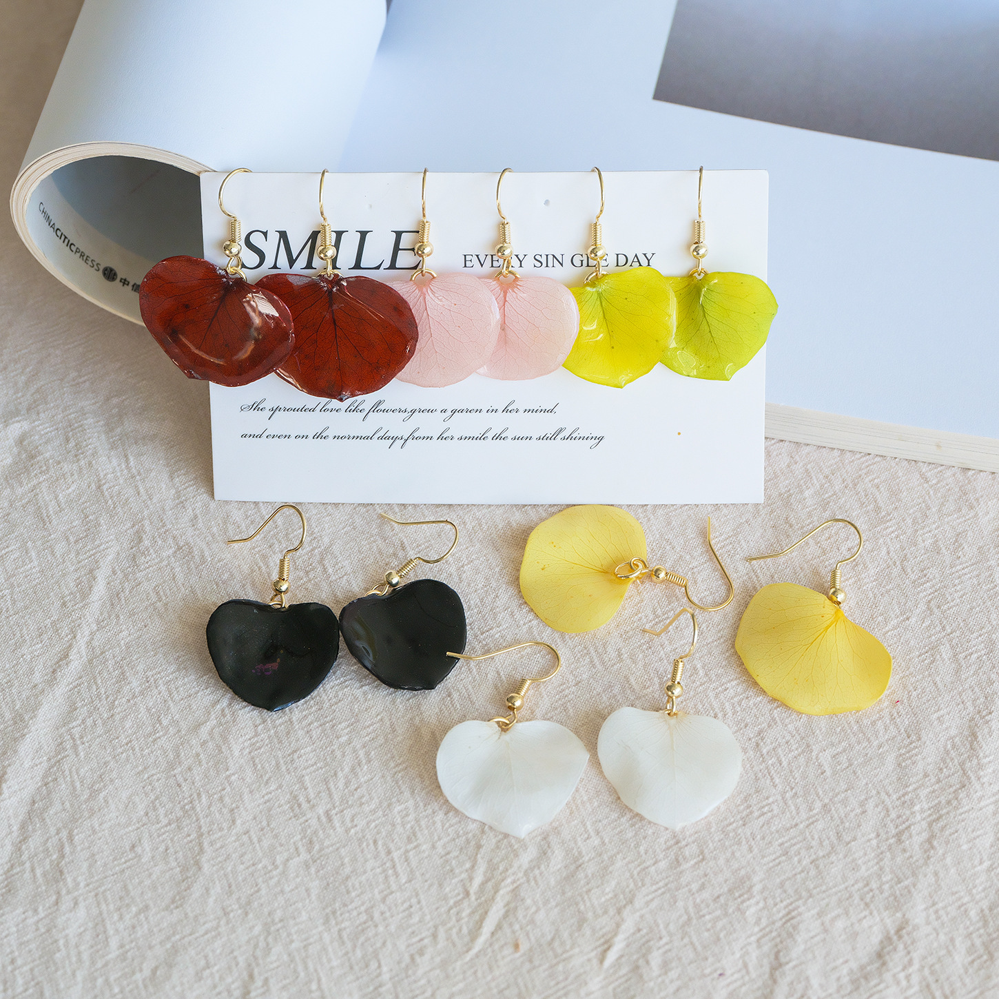 Original Resin Glue Real Flower Earrings Super Fairy Han Dynasty Handmade 925 Silver Needle Earrings Women's Earrings