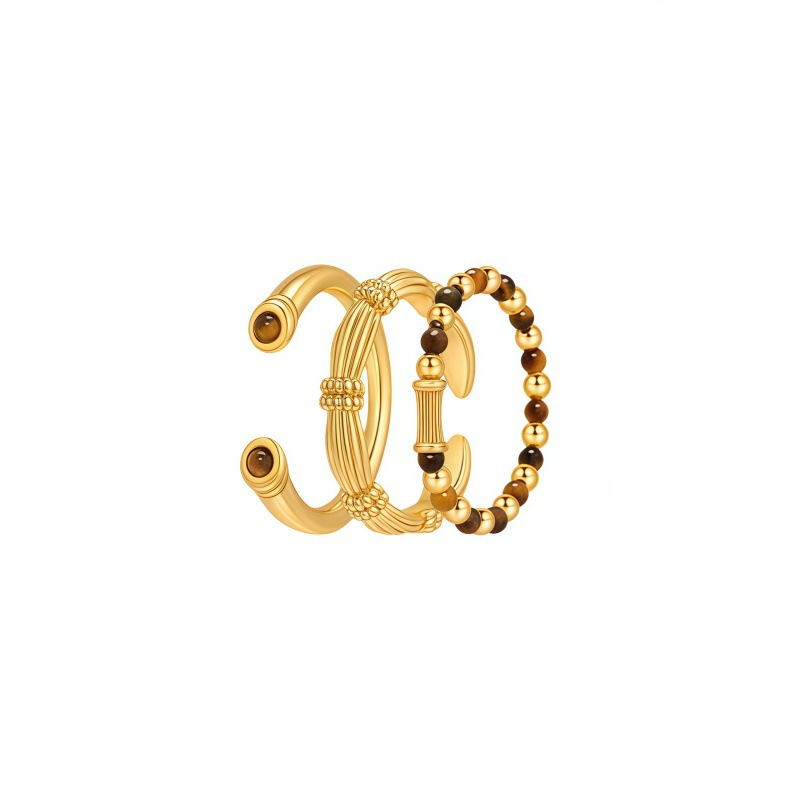 Taner Ring Set by Xin Zilai and Zhang Jingyi - Original Niche Retro High-End Tiger Eye Stone Open Ring