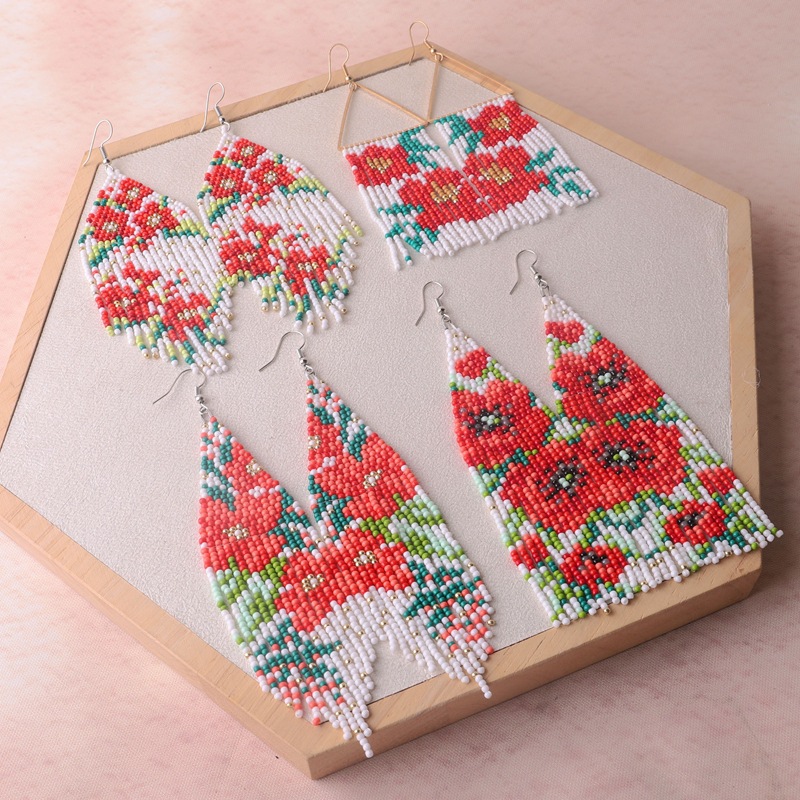 Cross-border European and American flower retro tassel women's earrings hand-woven Bohemian ethnic style color earrings wholesale