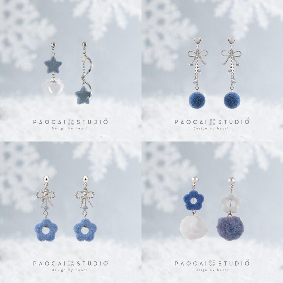Ice and Snow Original Asymmetric Haze Blue Star Earrings Suitable for Winter Sweet Girl Earrings Women's Earrings