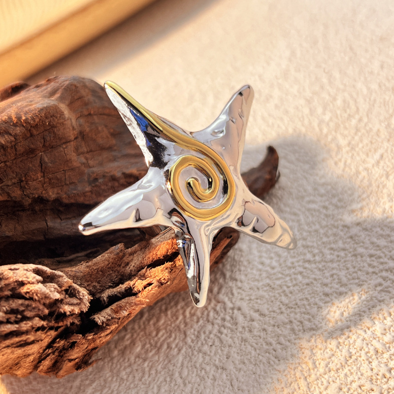Original design swirl five-pointed star ring women's light luxury high-end design fashion contrast color personality stainless steel jewelry
