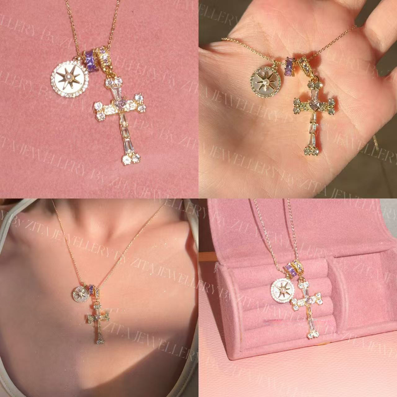 Cross-border Explosions Crown Cross Necklace Ladies 14K Gold Plated Crown Necklace Simple Diamond Necklace Faith