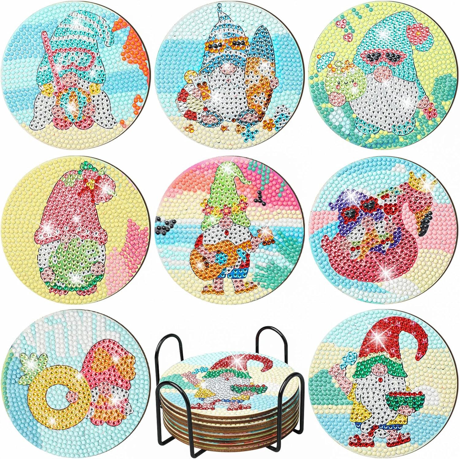 5D8 Piece Hawaiian Dwarf Diamond Painting Coaster, Diamond Coaster with Stand, Hawaiian Diamond Painting Cup