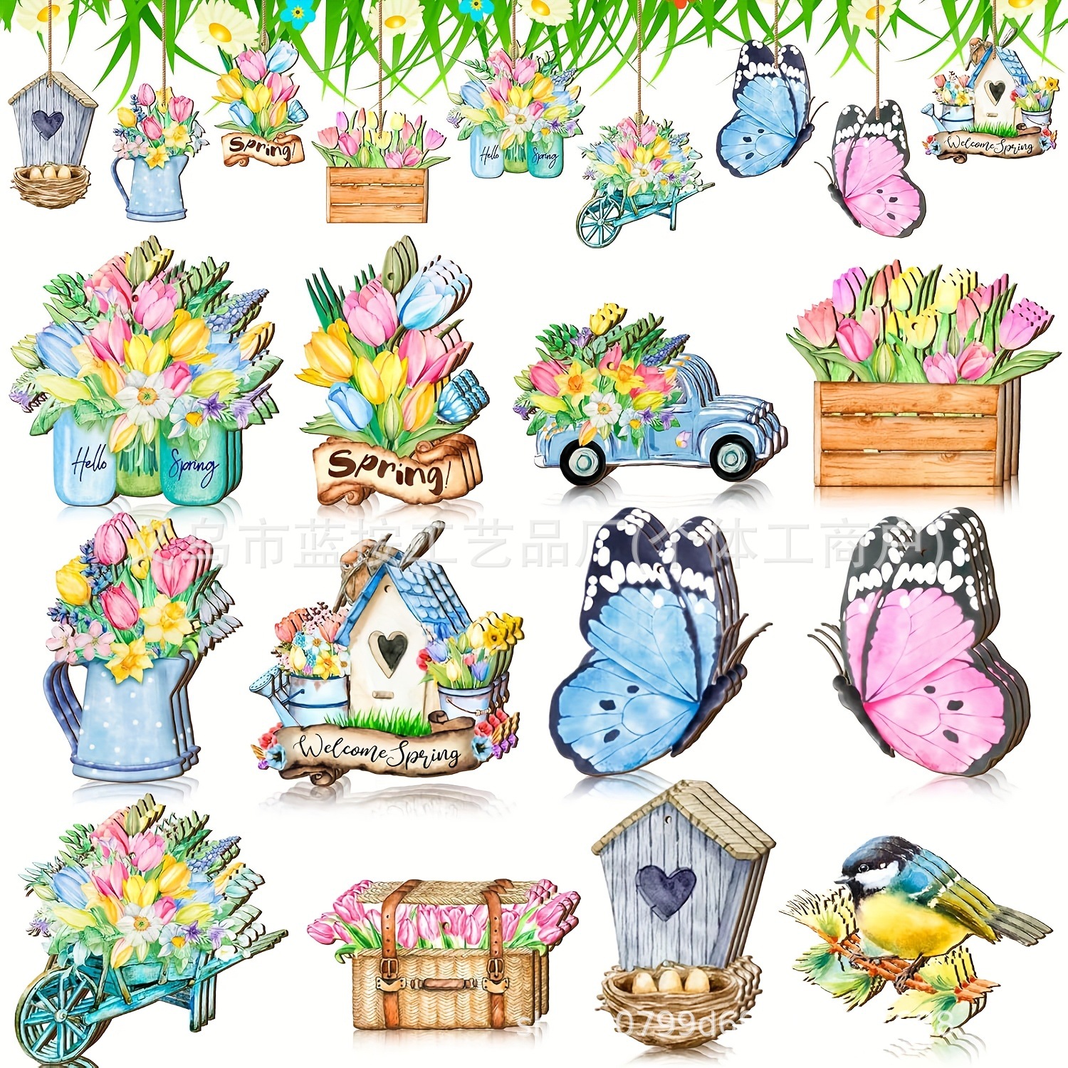 24Pcs Retro Summer Tree Ornaments Wooden Hanging Ornaments Hawaiian Decorative Pendants Suitable for Handmade Home Party Decor