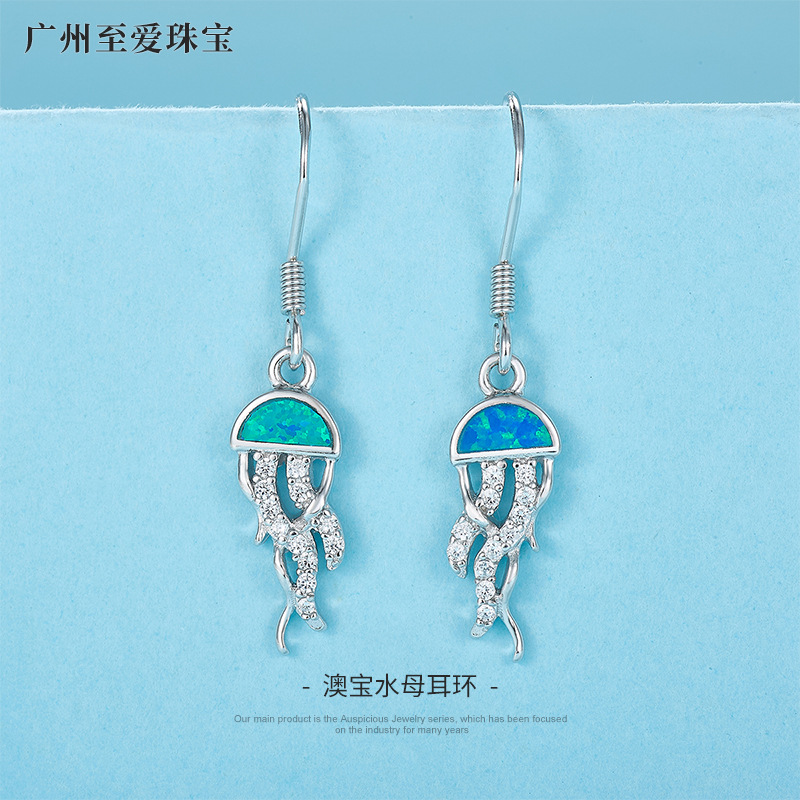 Customized New Hawaiian Simple Suit for Women, Accessible Luxury Ins Style Blue Opal Jellyfish Earrings Opal Accessories