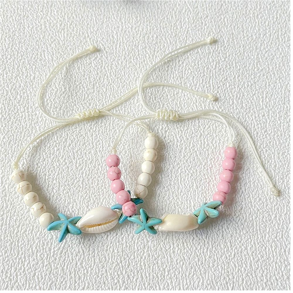 Hawaiian Style Starfish Shell Bracelet Bohemian Beaded Natural Stone Hand Woven Adjustable Hand Rope suit