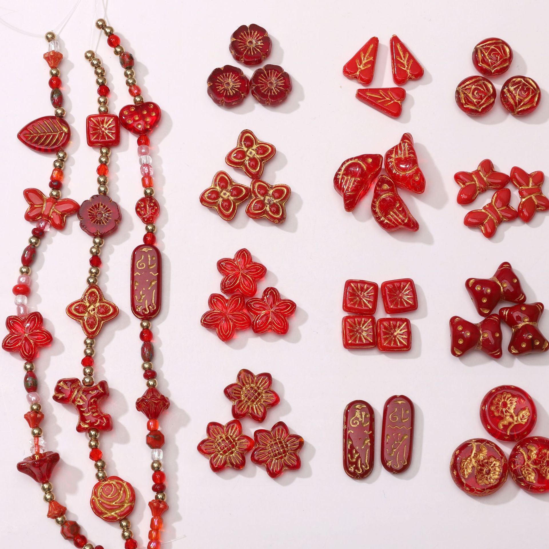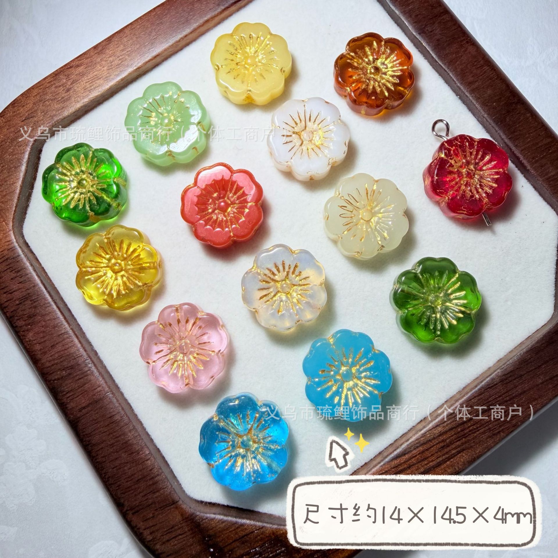 Domestic Glass Imitation Czech Beads New Color Gold-Painted Hawaiian Flower Beads DIY Bracelet Jewelry Material Accessories
