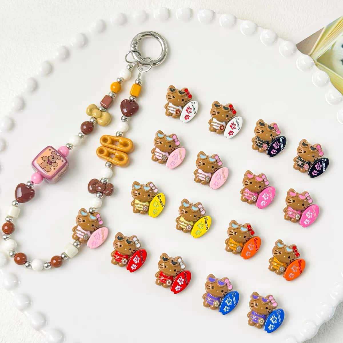 Hawaiian Black Leather Surfing Kt Cat Loose Beads Handmade DIY Material Bracelet Necklace Mobile Phone Chain Jewelry Accessories