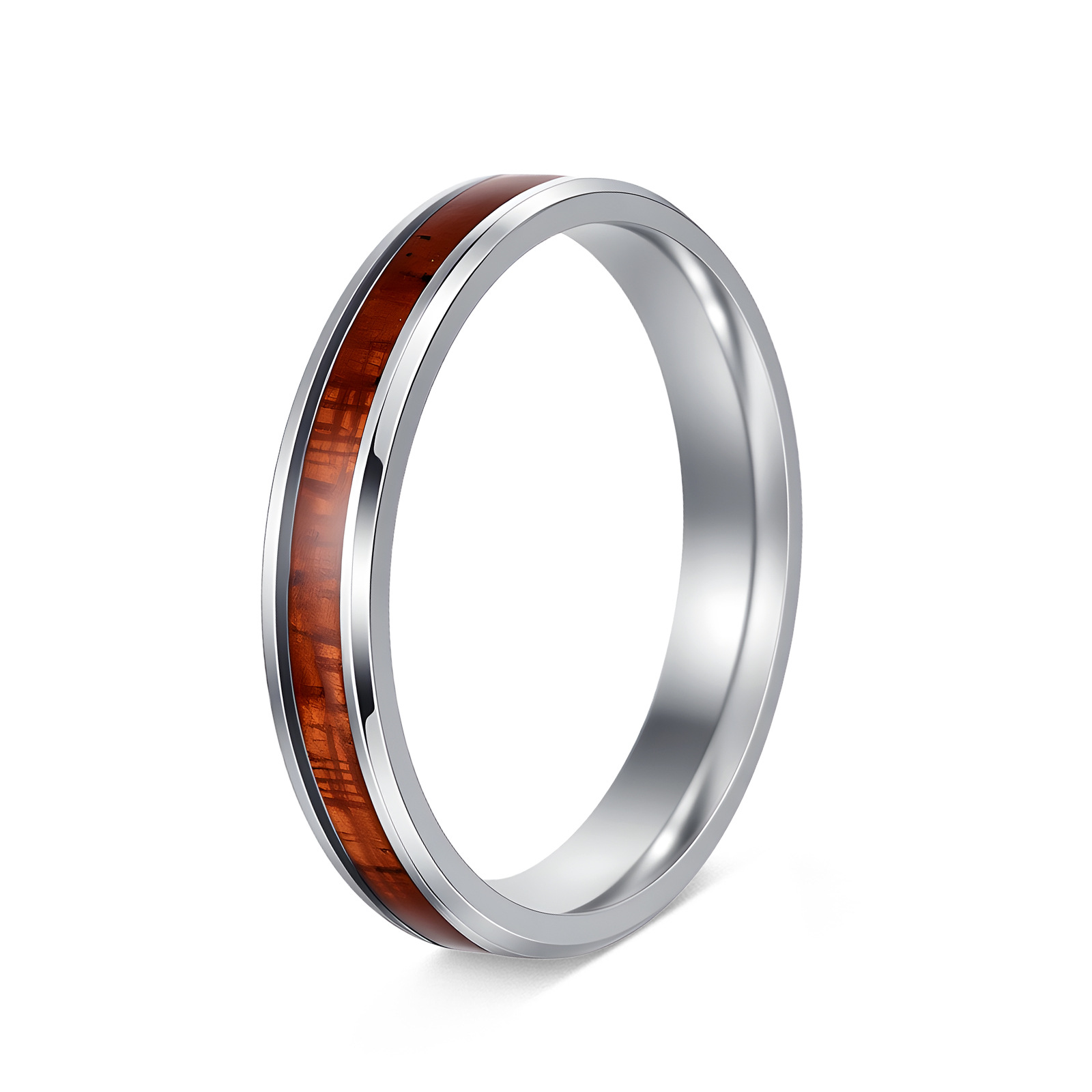 Amazon Titanium Steel Jewelry New Inlaid Hawaiian Acacia Wood 4mm Narrow Ring Couple Jewelry Women's Ring