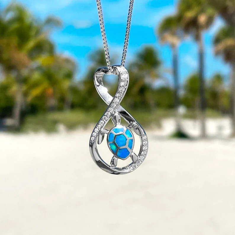 Hongdi European and American Cross-Border Hot-Selling Oil-Drip Imitation Opal Hawaiian Ocean Style Blue Starfish Necklace Opal Jewelry
