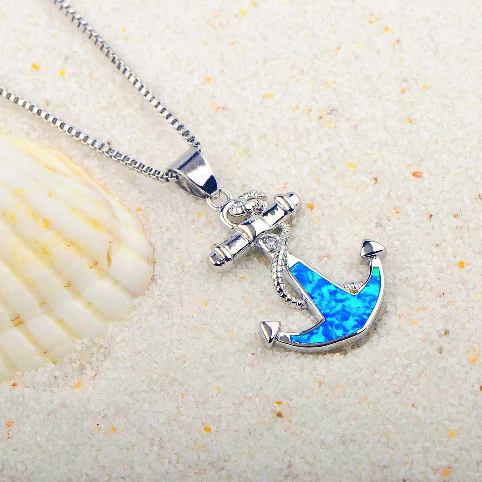 TikTok ins female fashion Hawaiian Ocean style blue Opal anchor pendant Opal necklace