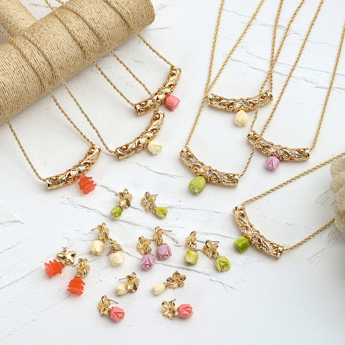 2022 new Hawaiian style egg flower heart-shaped necklace two-piece women's fashion high-end jewelry set