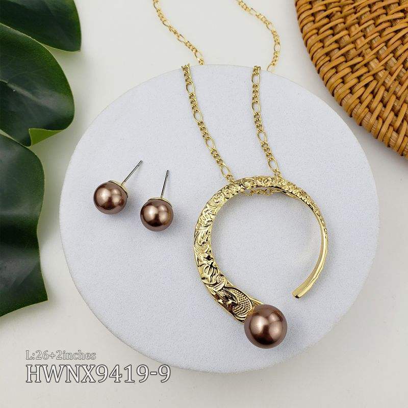 Tropical Style Exquisite Pearl Earrings C- shaped Hawaiian Style Pattern Necklace Two-piece Beads Figaro Chain Head