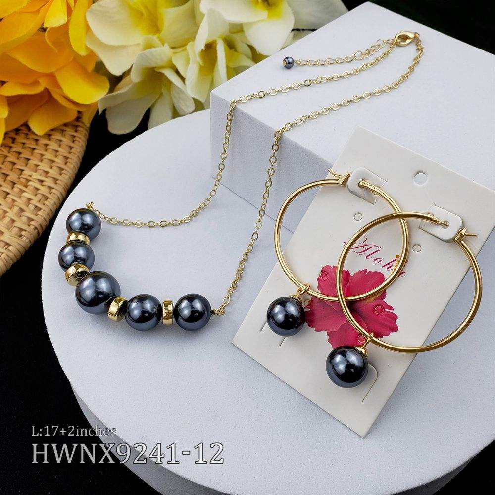 Tropical Hawaiian Style Necklace Set huggie Pearl Large Earrings Elegant Versatile Jewelry