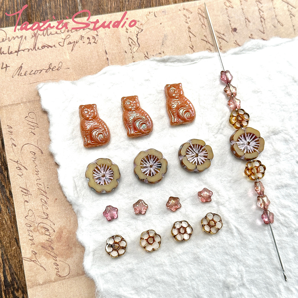 Retro Czech Beads Water Drop Hawaiian Flower Glass Loose Bead Bracelet Necklace Handmade Beading Material Jewelry Accessories