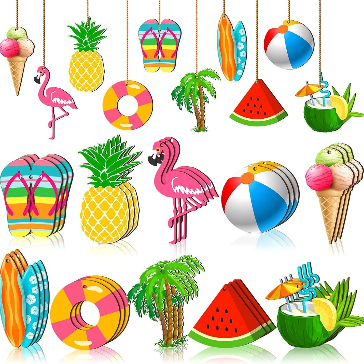 Summer Wood Items Christmas Tree Decoration Hawaiian Beach Wooden Pendant with Rope for Hawaiian Party Decoration