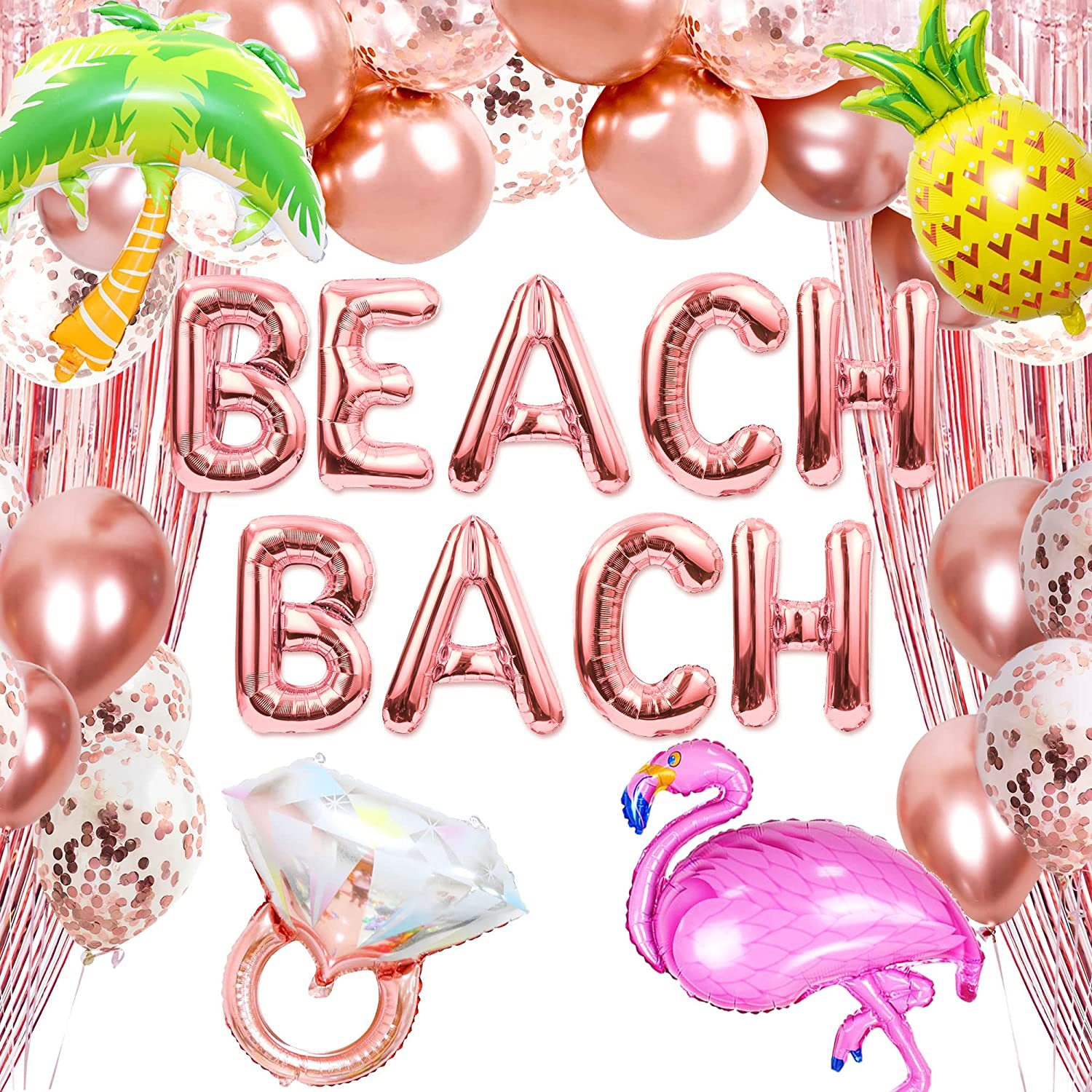 Beach Bach rose gold latex sequins pineapple diamond ring Flamingo Beach bachelor party proposal Hawaii