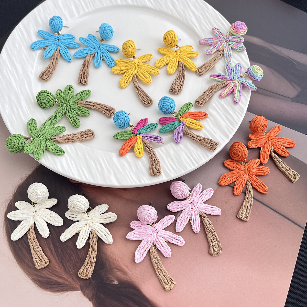 European and American Hawaiian Resort Style Raffia Coconut Earrings Bohemian Summer Colorfulful Woven Pendant Earrings