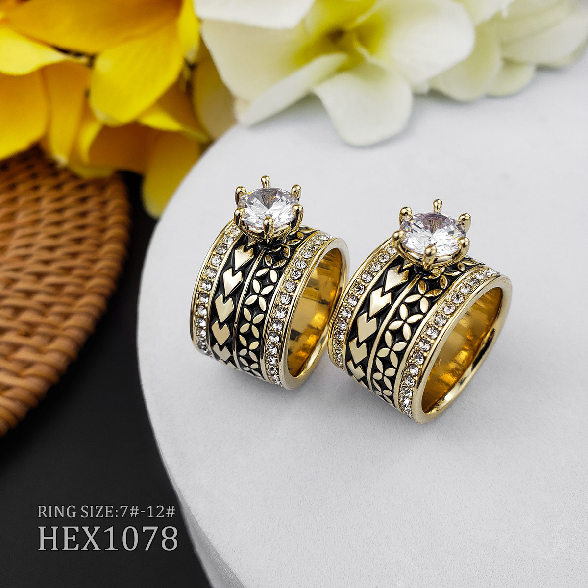 European and American fashion zircon four-leaf clover arrow ring copper plated 14K gold black dripping oil Hawaiian Samoa ring