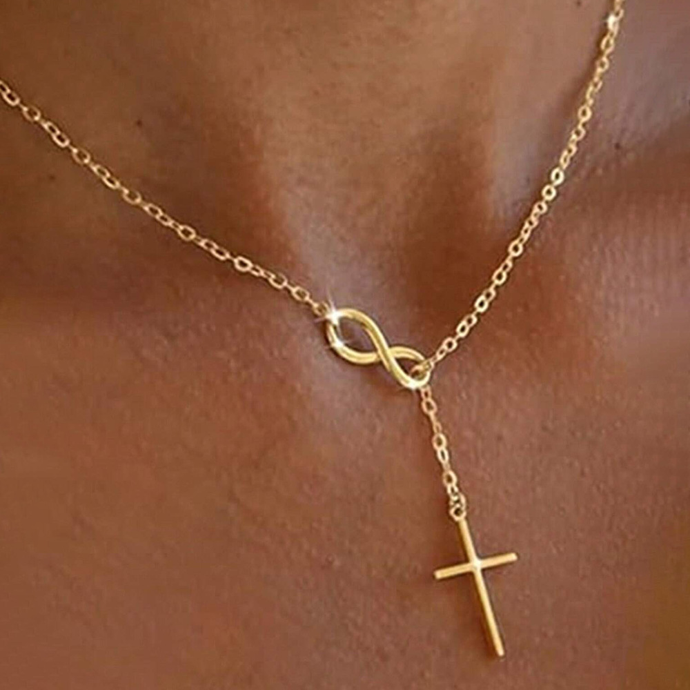 Trendy European and American Women's Clavicle Chain Simple Number 8 Cross Short Necklace Jewelry Cross-Border Hot Item