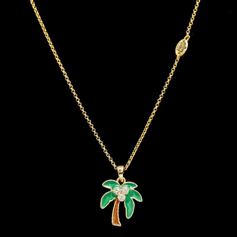 Enamel Glaze Green Coconut Tree Necklace Hawaiian Style Fashionable Versatile Diamond-Encrusted Clavicle Chain Gold-Plated Jewelry Gift