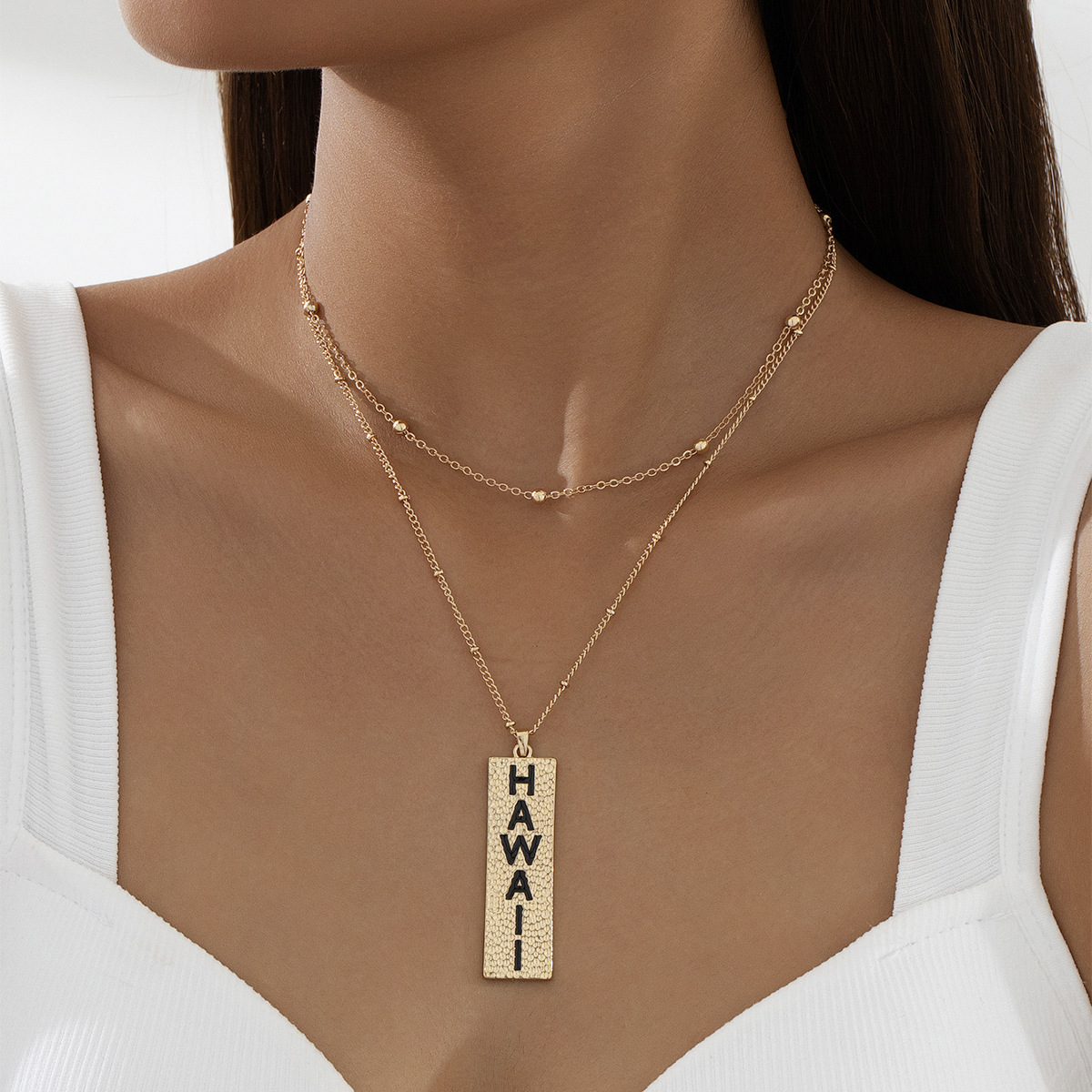 HAWAII Hawaiian Style Long Square Brand Fashionable Double-Layer Bean Chain Necklace Cross-Border Minimale European and American Necklace
