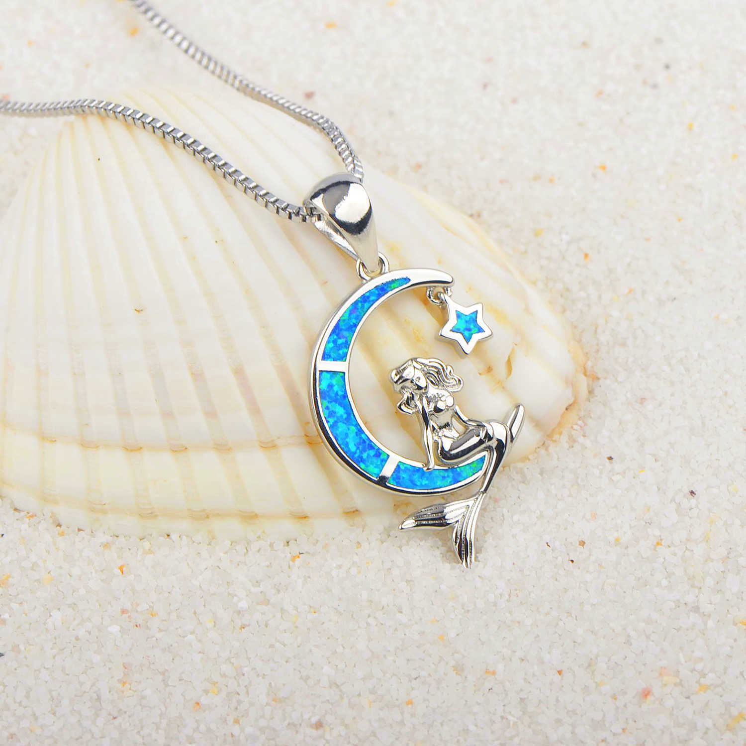 Opal Opal Necklace Women Fashion Hawaiian Ocean Style Clavicle Chain Blue Fish Hook Pendant Opal Necklace