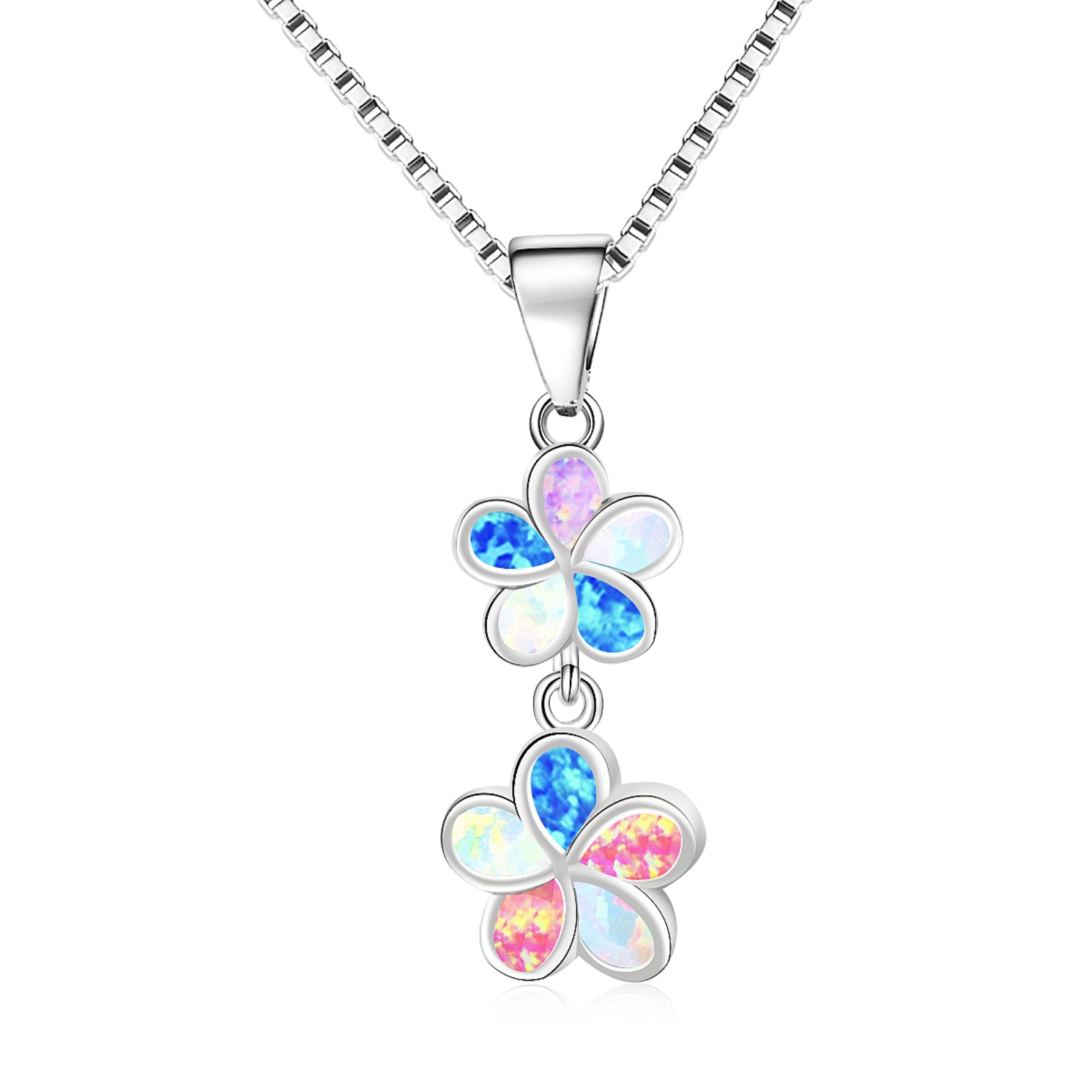 Tiktok Ins Style Popular Opal Hawaiian Flower Necklace Flower Pendant Jewelry Wholesale Inlaid with Opal