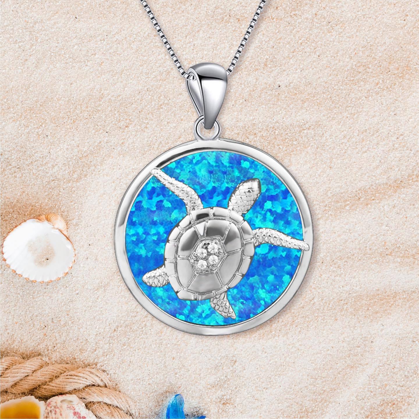 Tiktok European and American fashion jewelry Hawaiian blue opal turtle necklace turtle pendant wholesale Opal item