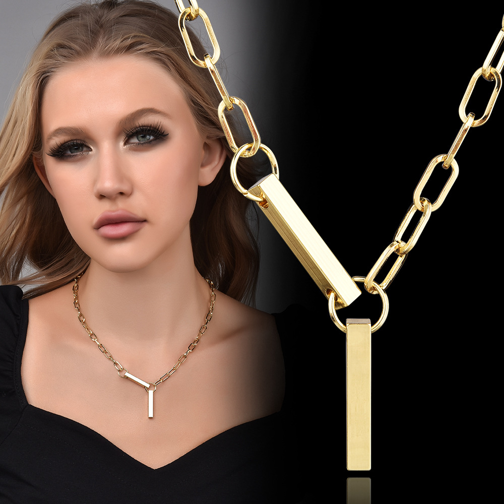 European and American Cross-Border Spanish Creative Necklace Metal Splicing Design Clavicle Chain Light Luxury Simple Style Fashion Accessories
