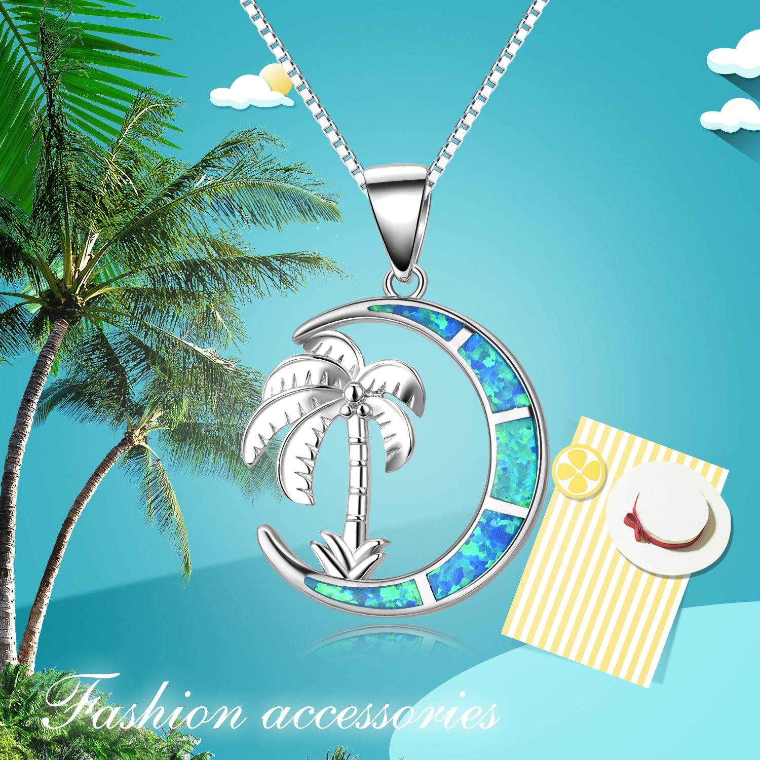 Amazon Opal Women's Hawaiian Ocean New Blue Moon Coconut Tree Pendant Palm Tree Necklace
