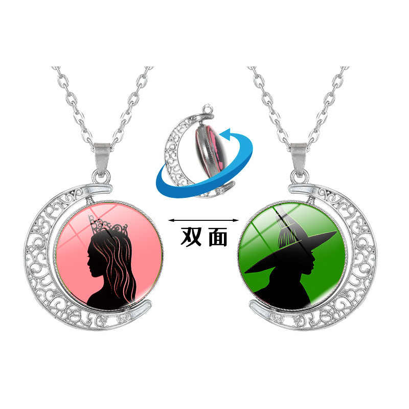 Double-Sided Rotating Moon Pendant Necklace Jewelry Wicked Wicked Witch Necklace Glinda Elphaba