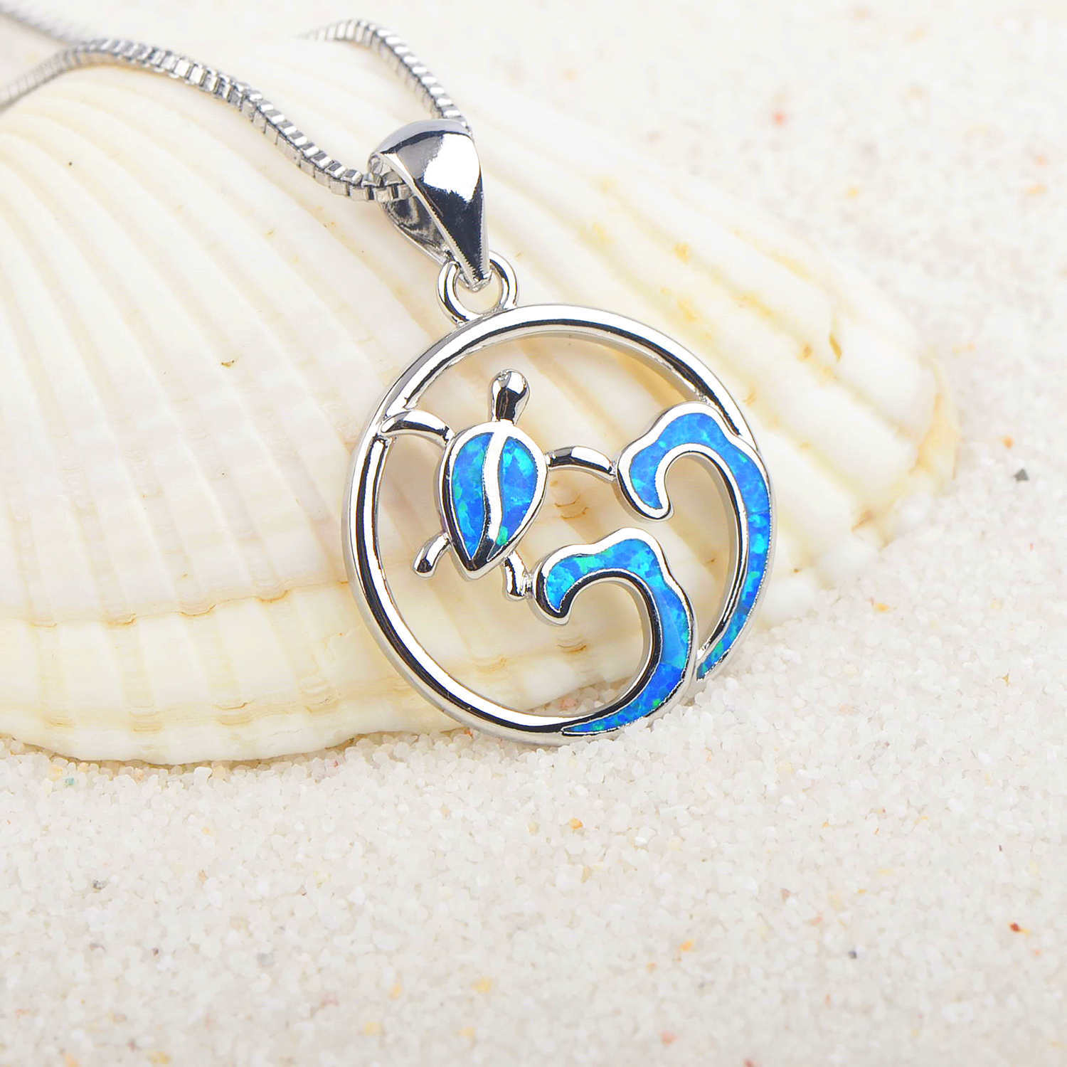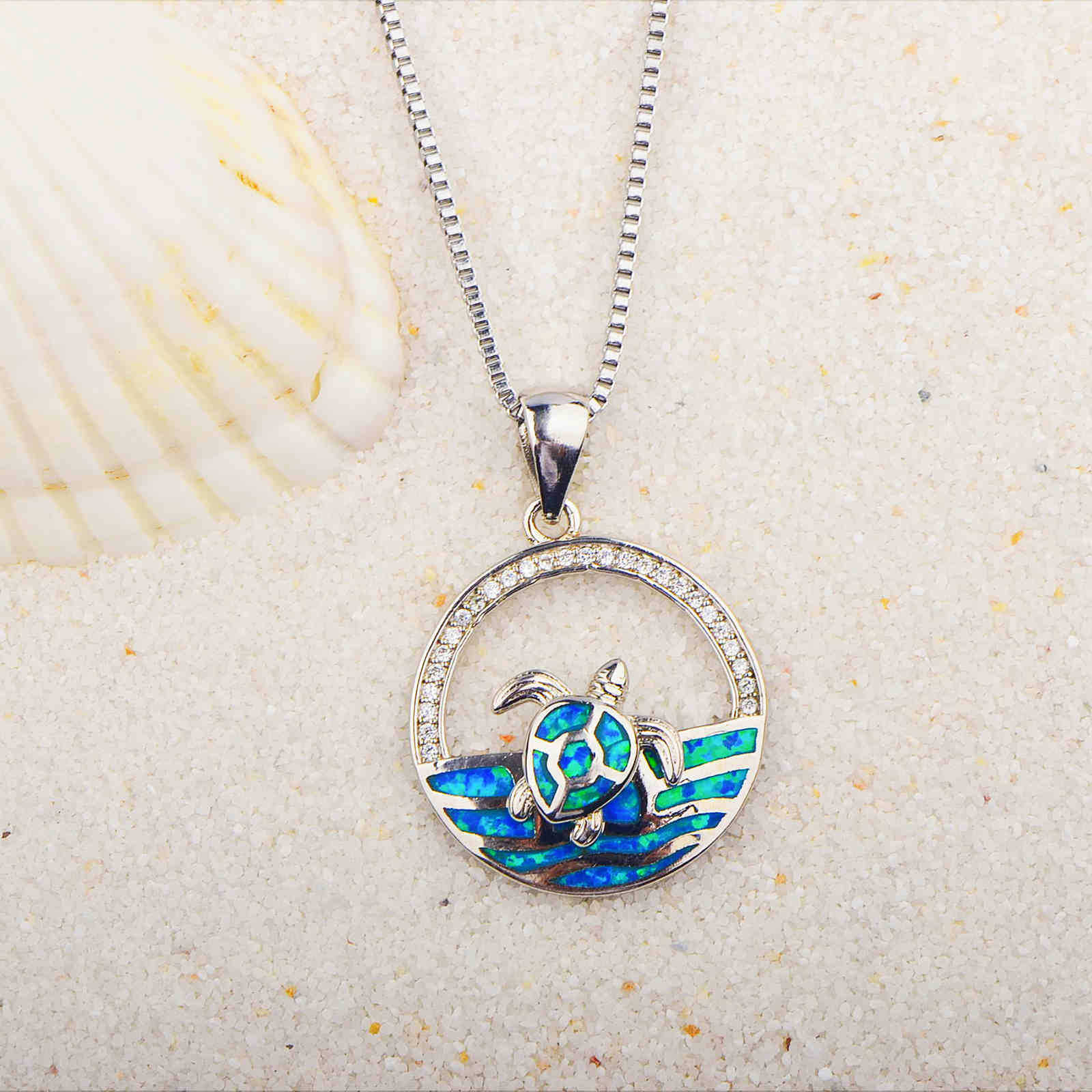 TikTok Hawaiian Ocean Opal Wave Turtle Necklace Surf Turtle Pendant Clavicle Chain Wool Chain Oper