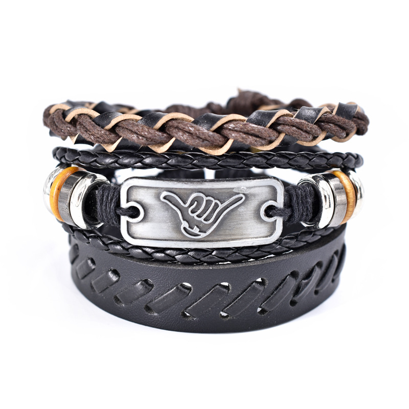 Hawaiian Hawaii English text Men's cowhide bracelet gesture woven vintage leather bracelet set Wholesale