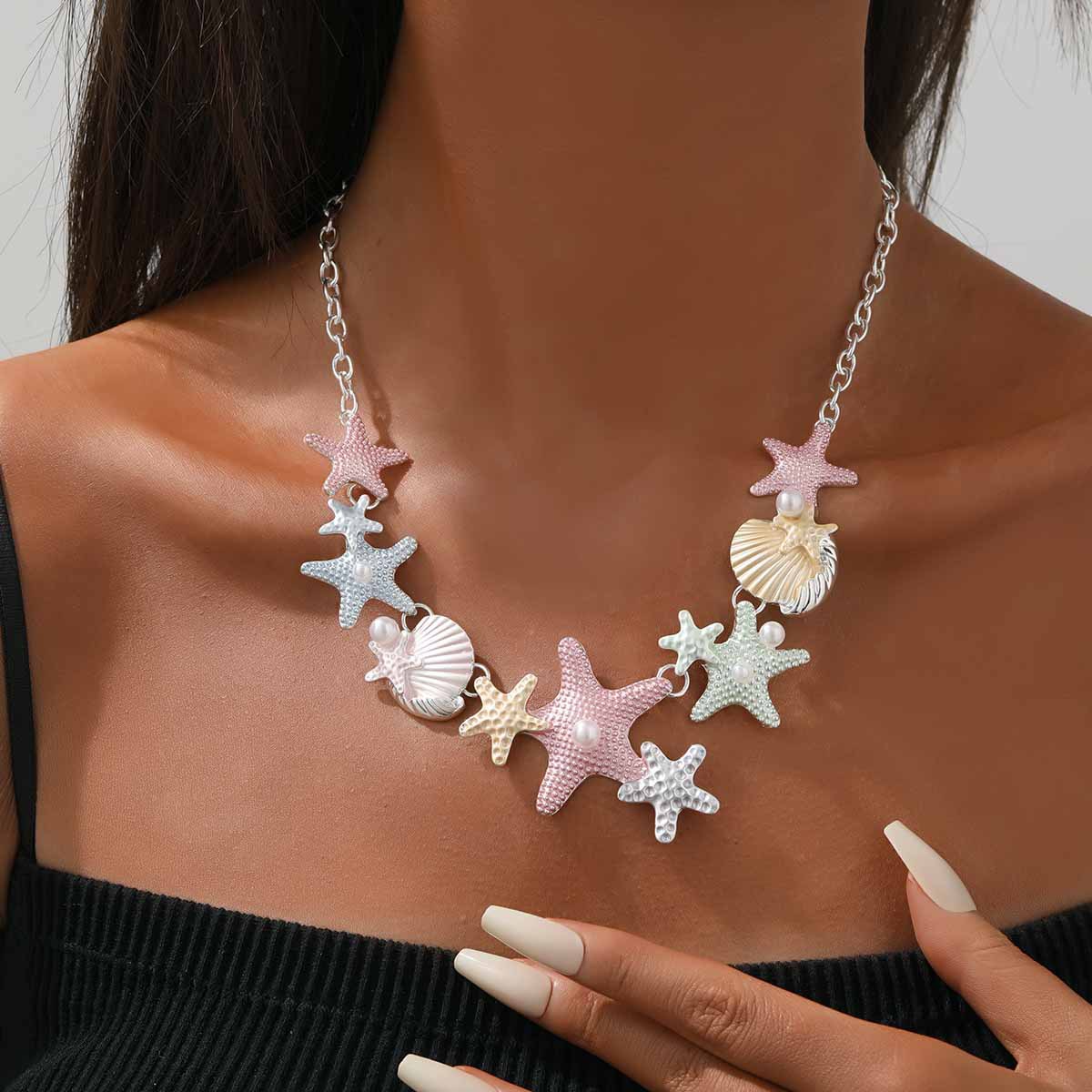 Vacation-Style Necklace, High-Value Hawaiian-Style Colorful Starfish Shell Pearl Necklace, Alloy Clavicle Necklace