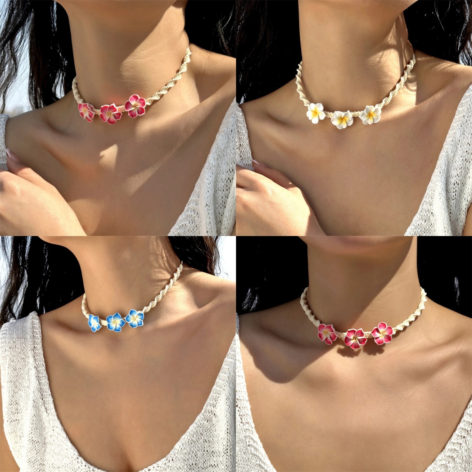 Hand-Woven Necklace Soft Pottery Flower Plumeria Woven Necklace Hawaiian Beach Popular Fashion Jewelry Bracelet for Women
