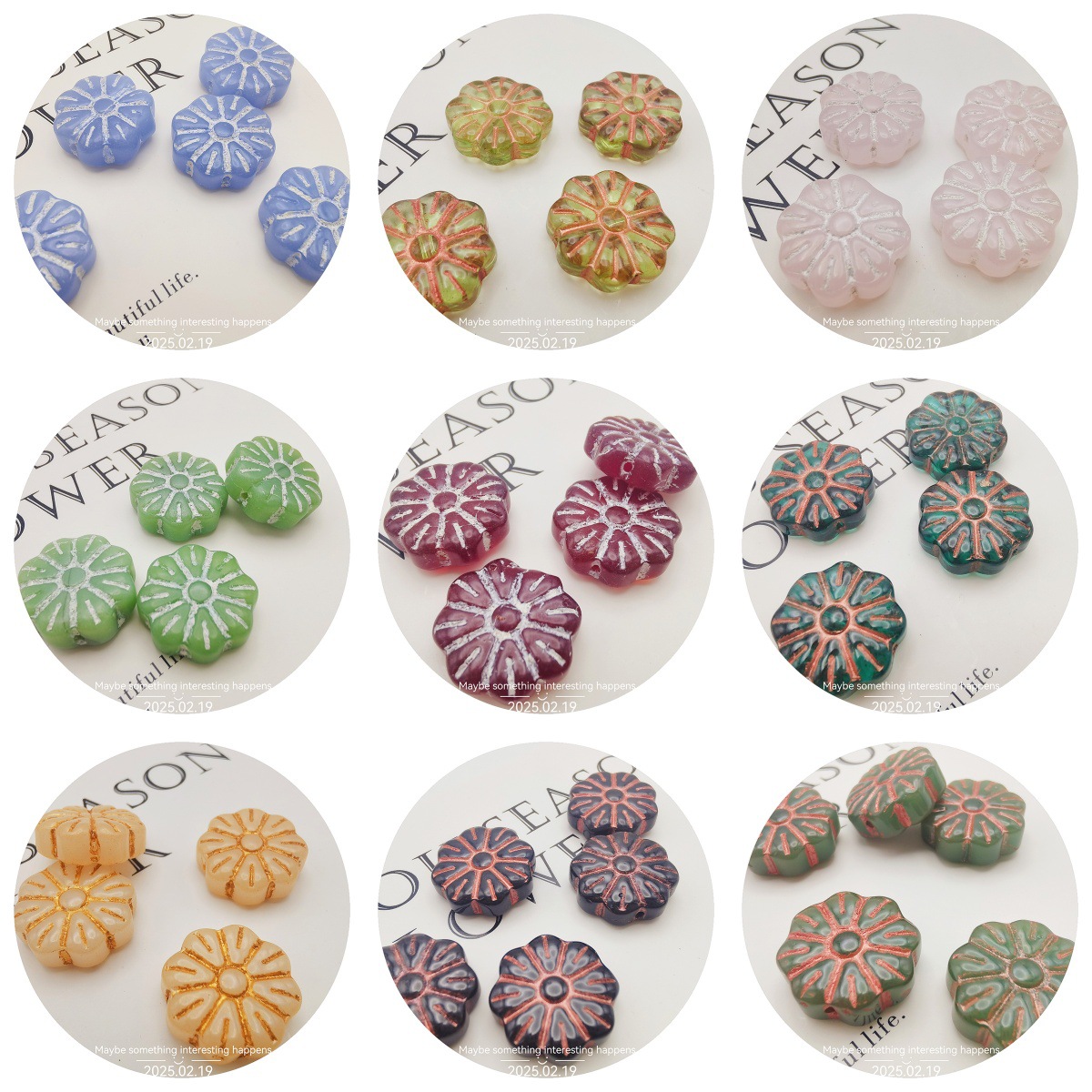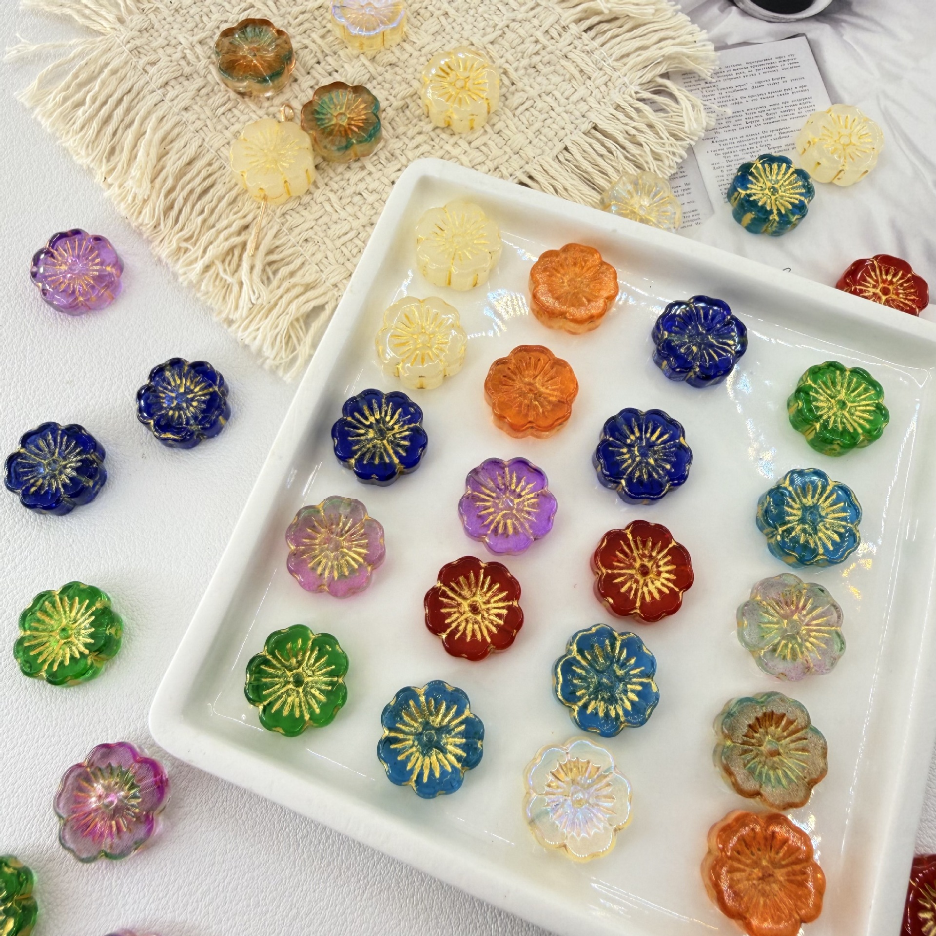 Domestic Glass Imitation Czech Beads New Color Gold-Painted Hawaiian Flower Beads DIY Bracelet Jewelry Material Accessories