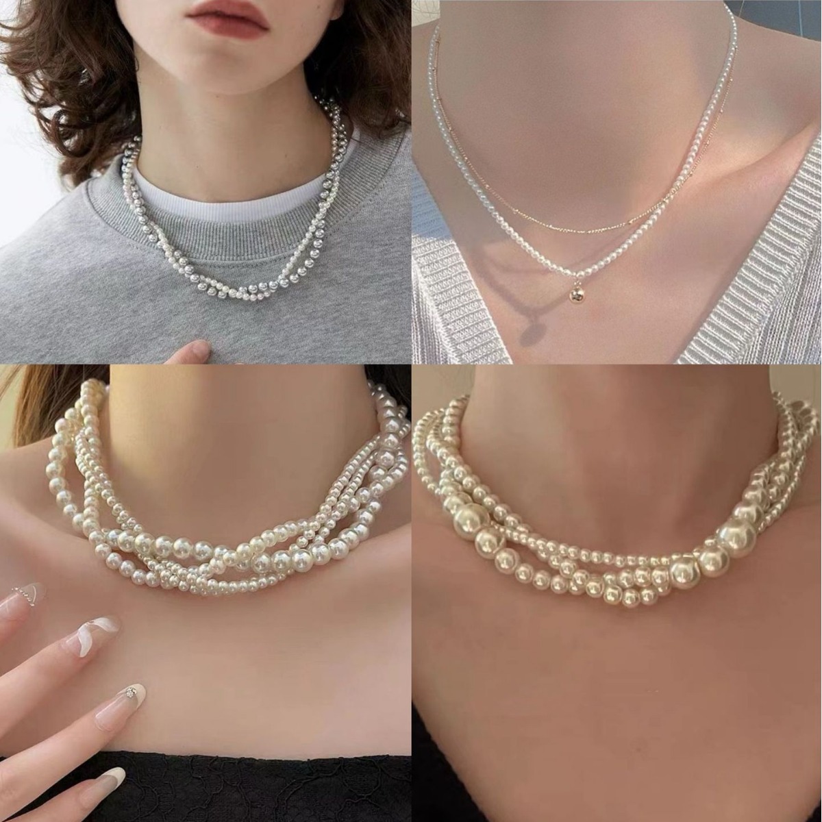 HJ-8 multi-layer glass pearl short necklace set