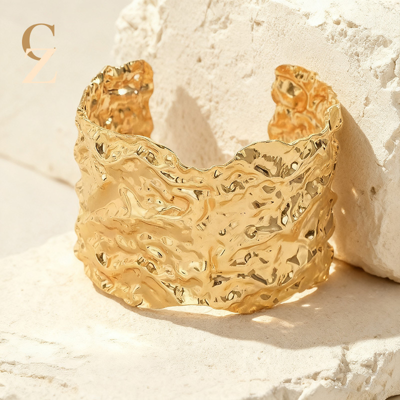 Cross-Border European and American Fashion Open Bracelet, Gold Color, High-End, Simple, Niche, Pleated Electroplating, Light Luxury Jewelry Wholesale