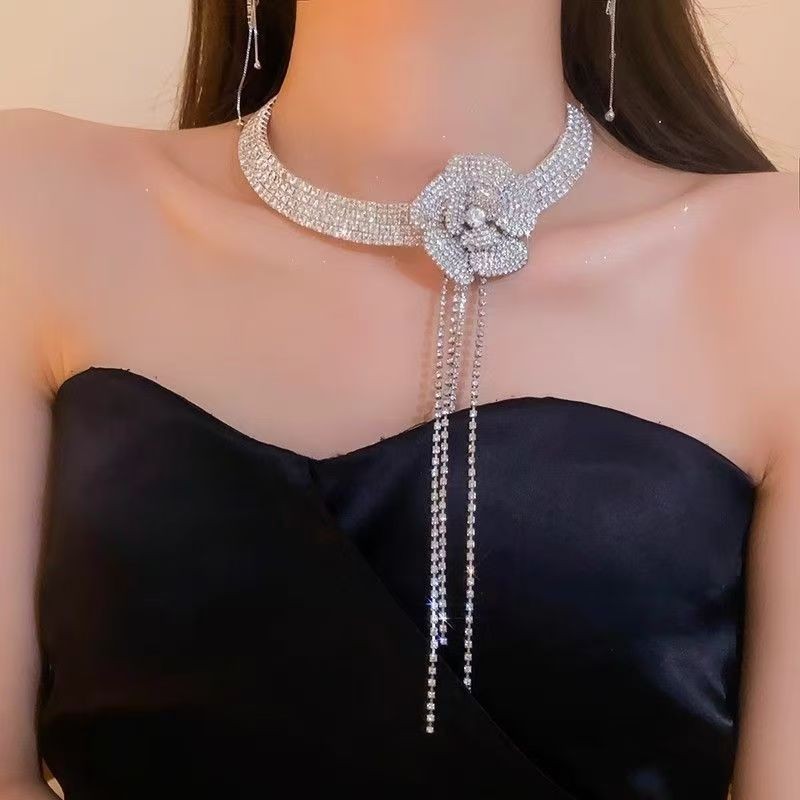 Diamond-Encrusted Zircon Water Drop Choker Necklace Accessible Luxury High-End Elegant Necklace 2025 New Jewelry