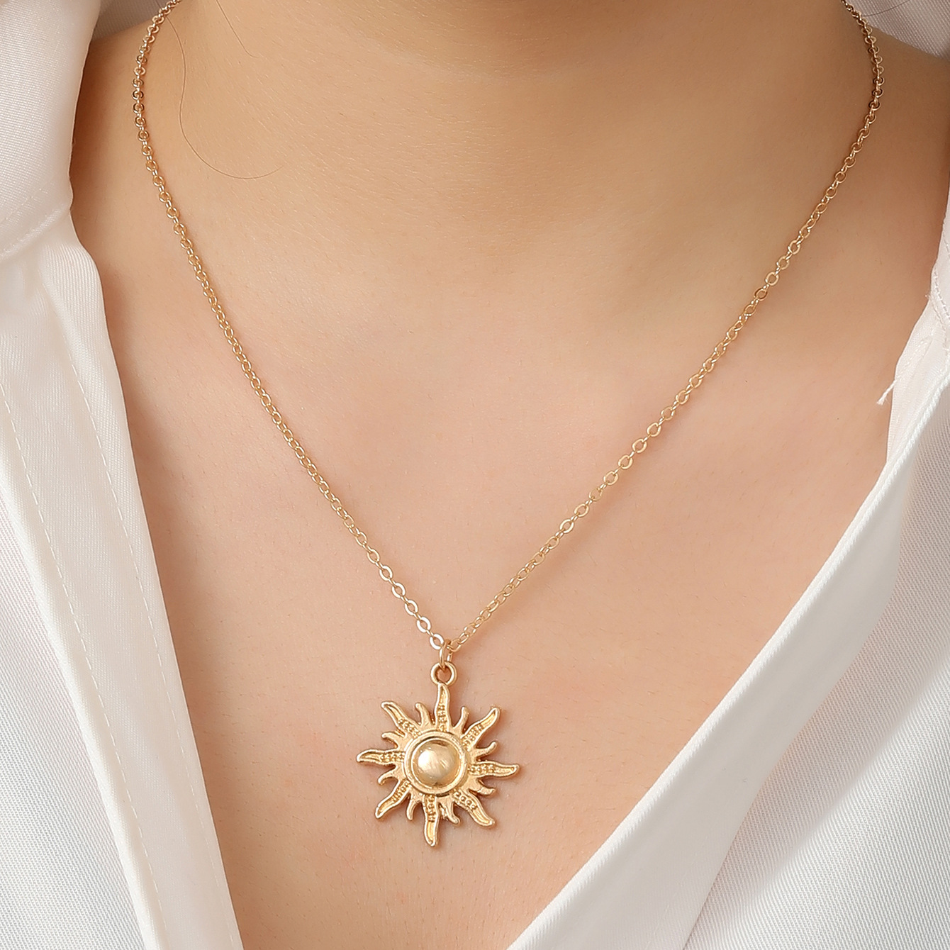 Vintage Sun Pendant Necklace Women's Ins Style Niche Design Sense Asahi Alloy Sweater Chain Trendy Cross-border Supply
