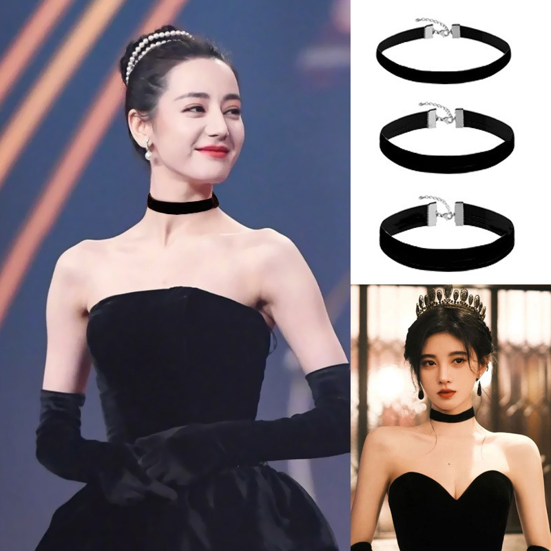 Ju Jingyi with gold velvet collar retro elegant black velvet collar choker clavicle chain necklace