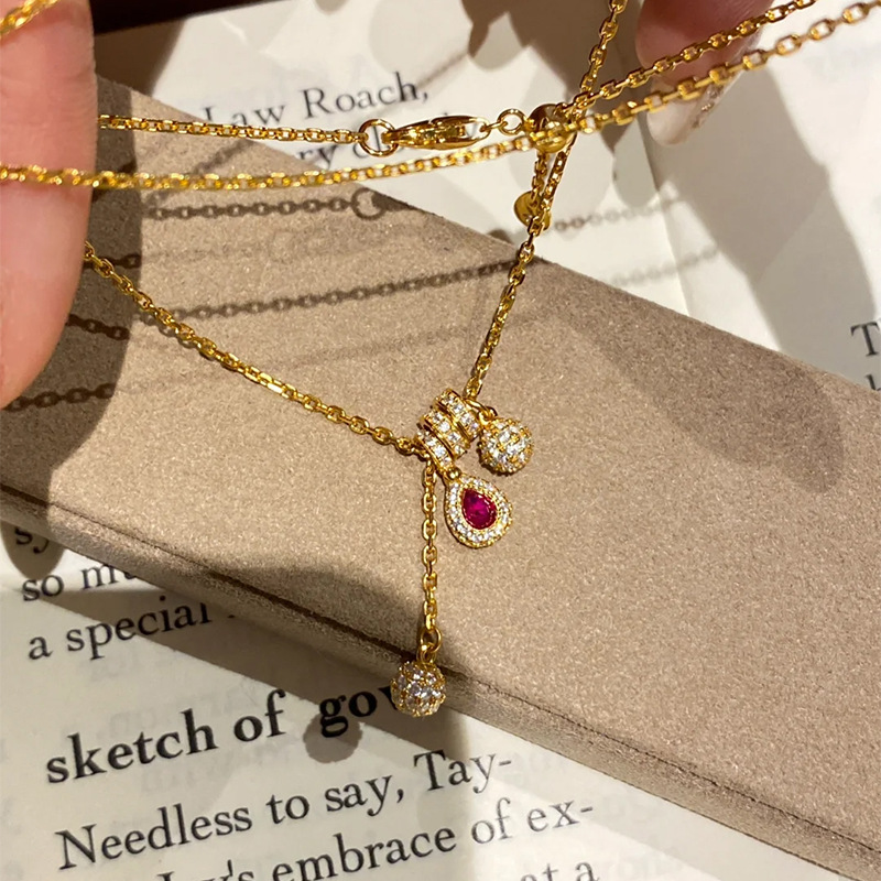 Little Red Book Explosions French Retro Red Treasure Water Drops Nut Necklace Niche Joker Fashion Clavicle Chain