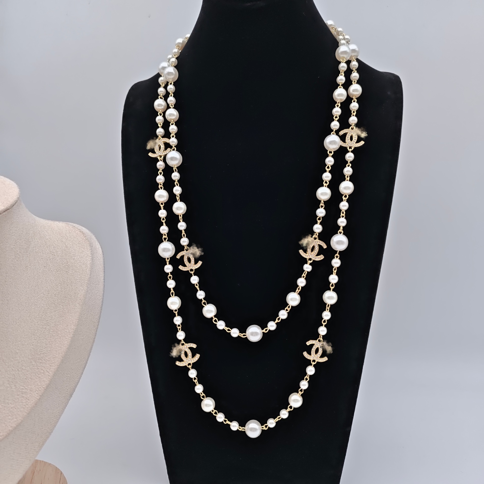 European and American cross-border jewelry fashion long round bead chain stacked wearing necklace retro style personality pearl otbuckle necklace