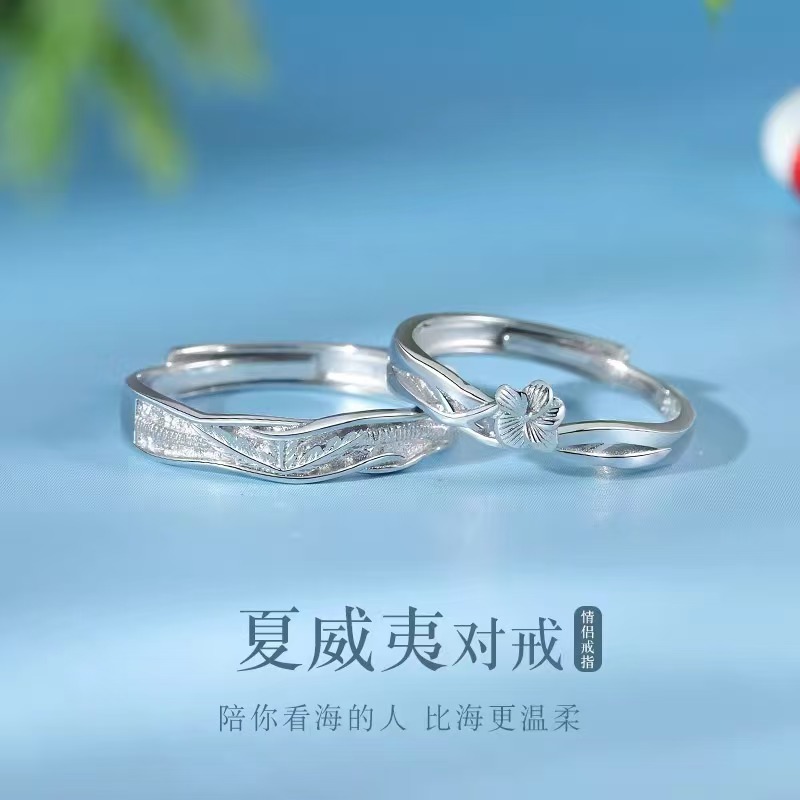 Hawaiian Sterling Silver Couple's Ring Niche Design Female Male Pair Light Luxury High-end Ring Fashion Birthday Gift