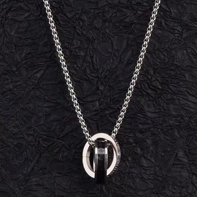 Titanium steel non-fading simple men's and women's street hip-hop double-ring pendant all-match jewelry sweater chain ring necklace