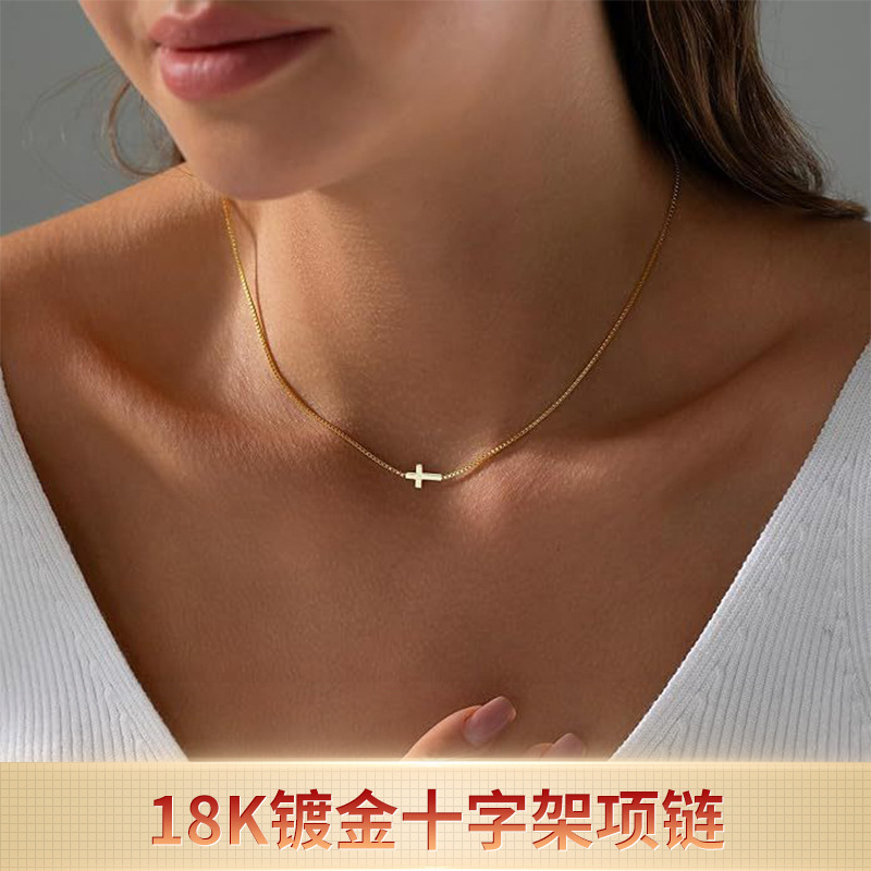 European and American Best-Selling New Product 14K Gold-Plated Cross Necklace Women's Clavicle Chain Simple and Stylish Commuter Jewelry Artistic